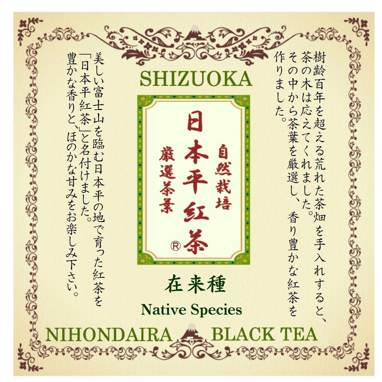 日本平の地で100年以上根付く茶ノ木から生産した紅茶です。
